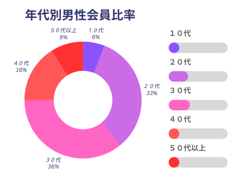 まだまだ遊びたい独身男性や不倫願望のある既婚男性の登録が目立ちます。
